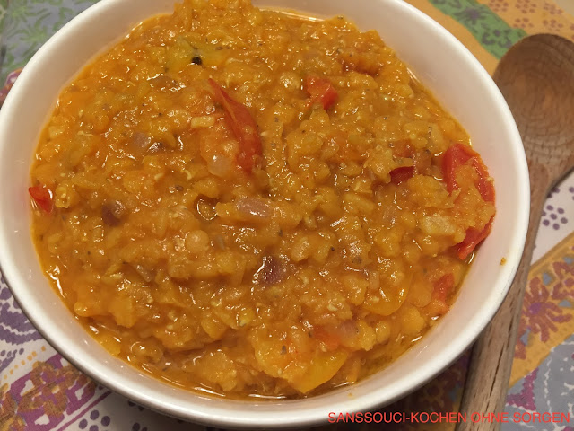 Das ist wohl eins der beliebtesten indischen Gerichte ausserhalb Indiens. Ich habe das schon vor vielen Jahren in Indien gegessen und dann auch in einigen Restaurants hier. Aber am besten schmeckt es, wenn man es zu Hause kocht. Das Rezept ist eine Mischung aus dem Schicken Tikka Masala aus dem Meera Soda Buch und dem Butter chicken Rezept aus dem Buch Einfach indisch aus dem Knesebeck Verlag. Hier wurde das Hühnchengericht mit Reis serviert und es gab noch Daily Dal und Auberginen in Kokosmilch dazu.
